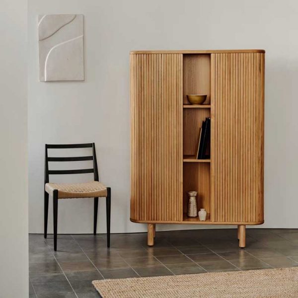 Aparador alto de 2 puertas. Hecho de madera maciza de mango con acabado natural.
